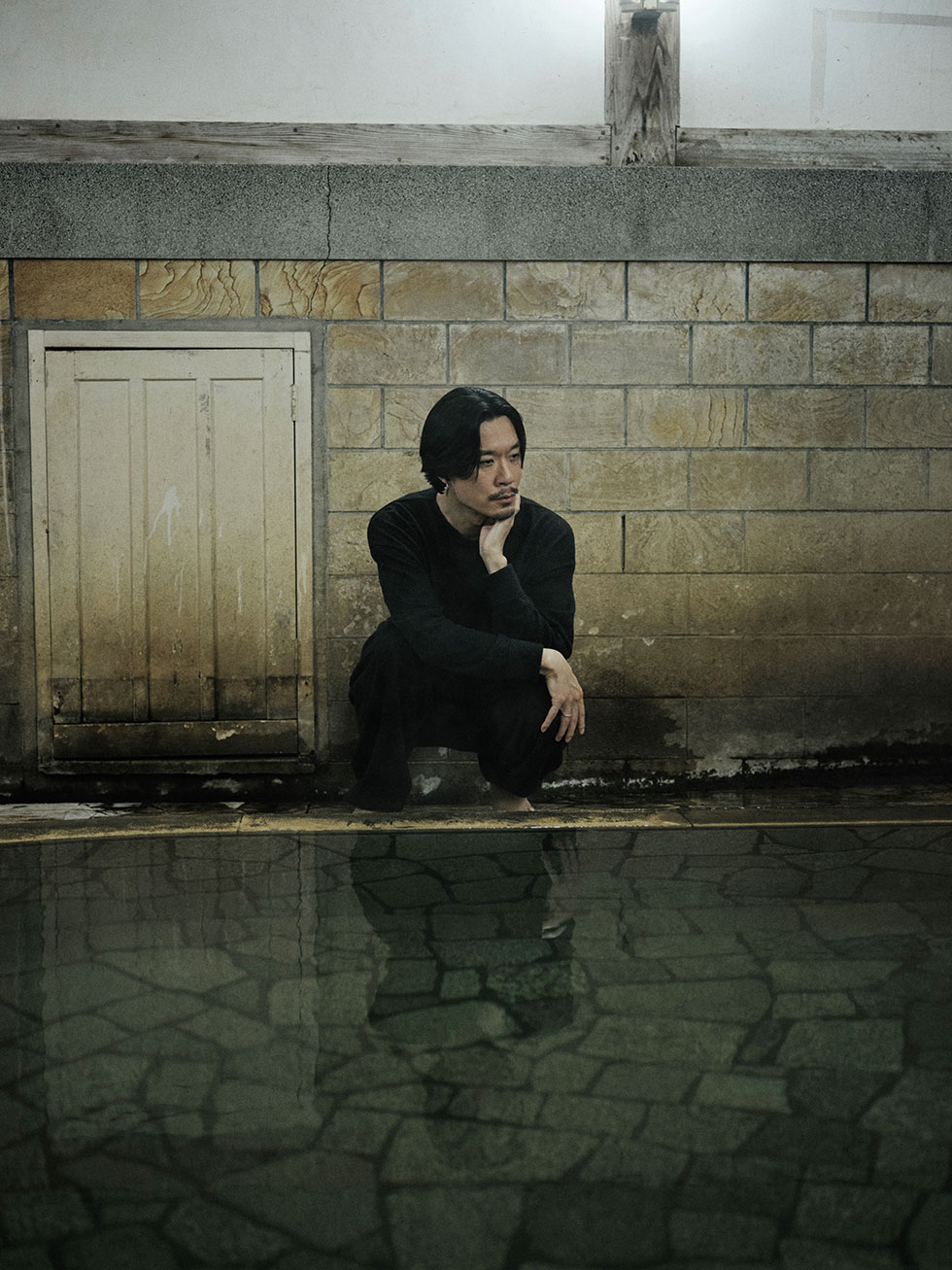 冥丁:これまでも水の音はたくさん使っていたんですが、今回音楽制作に入ったとき、温泉が目の前にある風景ばかり見ていましたので、やはりその音っていうのは強く印象に残っていますね。山田別荘には内湯(うちゆ)の温泉があるんです。そこが非常にいいところで、古い温泉ですから、旅館自体も経年変化した特有の味があって、写真集にも載せているんですが、とくに夜がすごいんです。お風呂の底が真っ黒で、なんといえばいいのか、あの世に行くかのような、闇のなかに落ちていくかのような感じがするんですよ。深夜二時くらいに入ったことがあって、ぼく以外だれも入浴していなくて、もうなんてすごい空間なんだろうと思って。そのとき、お湯が浴槽から外にあふれ出て、ちょろちょろと鳴っていて。その音がめちゃくちゃよくて。すごく肉感があるというか、ASMR的ともいえるんですが、それを活かして音楽をつくることができないか、と。今回、アルバムの最後からひとつ手前に、お湯の音しか使っていない、1分くらいの曲があります(“泉涌 - お湯”)。もうただお湯の音が鳴っていれば十分なのではないかと、そう思わせるくらいその温泉での体験が大きかった。だから今回、水の音を邪魔しないように作曲でも心がけました。