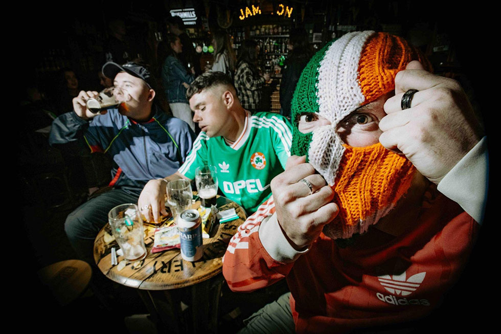 Formed by rappers Móglaí Bap and Mo Chara, along with DJ Próvaí, Belfast-based band Kneecap’s work is dense with the language, both verbal and visual, of the Irish political landscape. DJ Próvaí’s name and Irish tricolour flag balaclava are both references to the republican paramilitary group the IRA. The group’s name refers to a notorious form of torture and punishment carried out by such groups. It’s a provocation, for sure, but marrying this language to the sort of raucous party atmosphere of their shows is also a way of putting the edge of fear and danger it implies behind them and open up a shared space for young fans from both sides of the sectarian divide — especially those who grew up in the years after the 1998 peace agreement.
