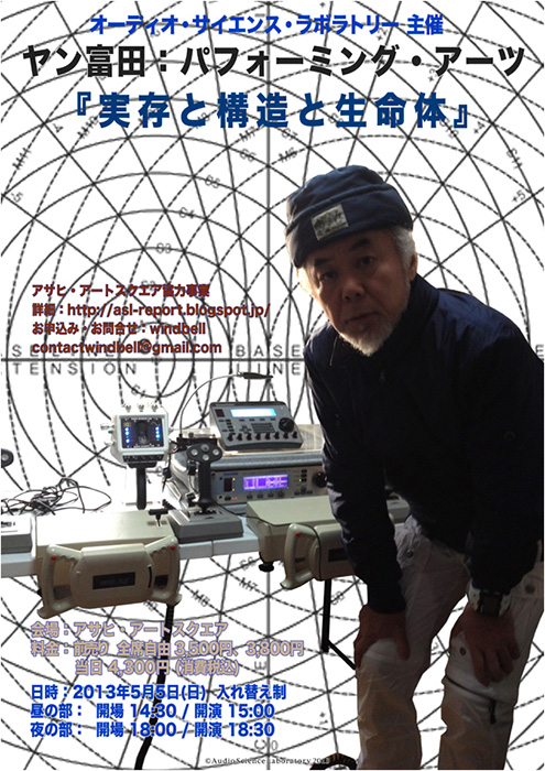 ヤン富田・オーディオ・サイエンス・ラボラトリー公式blog開設のお知らせと、GW5/5(日)浅草アサヒ・アートスクエアでのパフォーミング・アーツ「実存と構造と生命体」公演開催のお知らせ。
