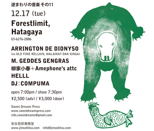 出演:アーリントン・デ・ディオニソ(オールドタイム・レリジャン、マライカ・ダン・シンガ)、M. ゲディス・ジェングラス、柳家小春+Amephone's attc、HELLL