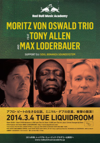 Home > News > Red Bull Music Academy presentsMORITZ VON OSWALD TRIO featuring TONY ALLEN and MAX LODERBAUER - ──3月4日火曜日の夜リキッドルーム、アフロビートとベルリン・ミニマルとの出会い!