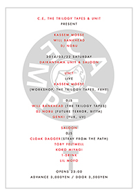 C.E 〈THE TRILOGY TAPES〉 & UNIT present<br>KASSEM MOSSE / WILL BANKHEAD / DJ NOBU - ──いまハウスはもっとも急進的なのだ! | ele-king http://t.co/mr549dTqyc@junior0862 03.14 00:27