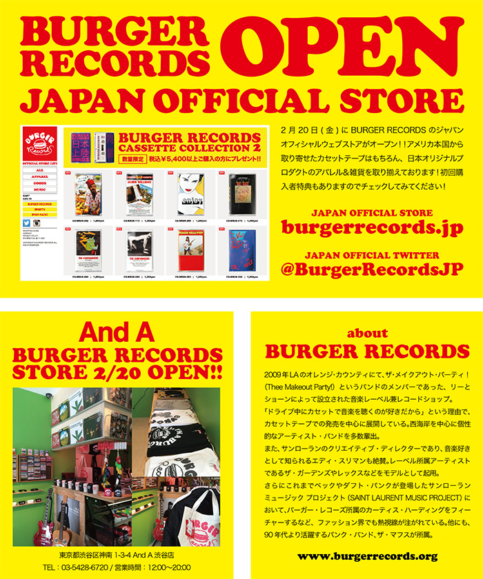 BURGER RECORDS JAPAN OFFICIAL STORE OPEN - ──USカセット専門レーベルが日本上陸 http://t.co/fbTWaiXm0d@news_now2013 02.20 18:16