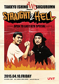 そしてみんなクレイジーになった──石野卓球とスギウラムという、日本でも指折りのクレイジーなふたりが4月10日(金)に代官山ユニットでスペシャル企画「STRAIGHT 2 HELL」を開催。最初から最後まで、このふたりがB2BでDJするというから、恐ろしい。本気で騒ぎたいヤツは大集合だね。