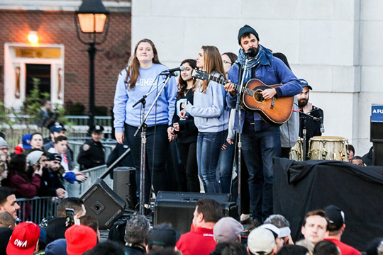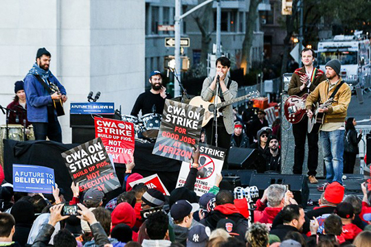 以下、ワシントンスクエア・パークのバーニーショー(サンダース応援コンサート)の模様です。ヴァンパイア・ウィークエンドとダーティー・プロジェクターズが演奏、ものすごい人です。ヴァンパイア・ウィークエンドはバーニーショーに出るのはこれで3回目。