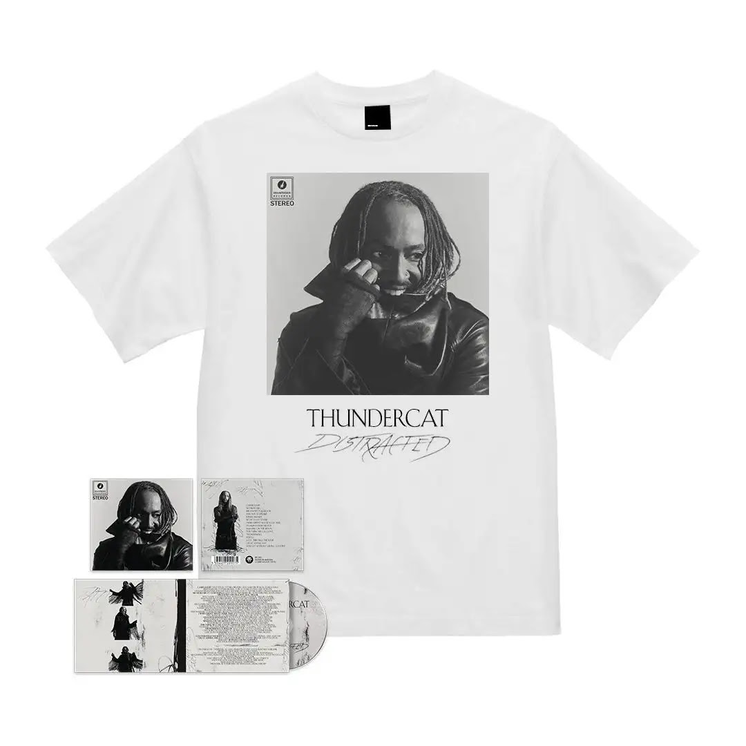 サンダーキャット待望の最新アルバム『Distracted』は、4月3日 (金) にCD、LP、デジタル配信で世界同時リリース。LPは、通常盤 (レッド・ヴァイナル)に加え、日本語帯付き限定盤 (クリア/ブラック・マーブル・スモークエフェクト・ヴァイナル)、限定盤 (クリア/ブラック・マーブル・スモークエフェクト・ヴァイナル)、タワーレコード限定盤 (クリア/ホワイト/ブラック・スプラッター・ヴァイナル)、ディスクユニオン限定盤 (クリア/ターコイズ/ブラック・スプラッター・ヴァイナル)も発売。国内盤CDと日本語帯付き限定盤には歌詞対訳と解説書が封入され、Tシャツ付きセットも発売決定。さらに、アルバム購入者は先着でサンダーキャットのオリジナル・アクリル・スタンドがもらえる。